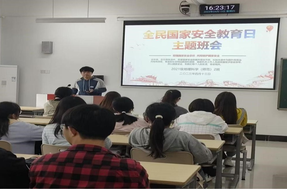 4月15日是第八个全民国家安全教育日。为深入落实总体国家安全观,进一步增强广大师生国家安全意识和素养,地理与规划学院通过主题班会、电子显示屏、微信推送等多形式,在全院开展了全民国家安全教育日系列活动。