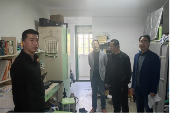 在宿舍走访过程中,刘为国一行与同学们亲切交谈,详细查看学生宿舍安全、卫生状况,提醒大家要提高安全意识,养成良好卫生习惯,践行健康生活方式;勉励同学们要珍惜宝贵的大学时光,做好学习规划,学好专业知识;积极锻炼身体,丰富课余生活,提升个人素养。