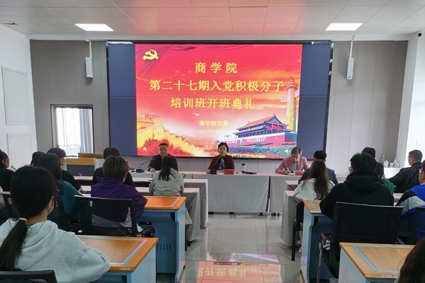 为深入学习贯彻习近平新时代中国特色社会主义思想和党的二十大精神,增强入党积极分子的党性观念和党性修养,5月8日下午,商学院在博识北401多功能实验室举行第二十七期入党积极分子培训班开班典礼。学院党政领导、各党支部书记及全体参训学员参加了开班典礼。开班典礼由院长项桂娥主持。