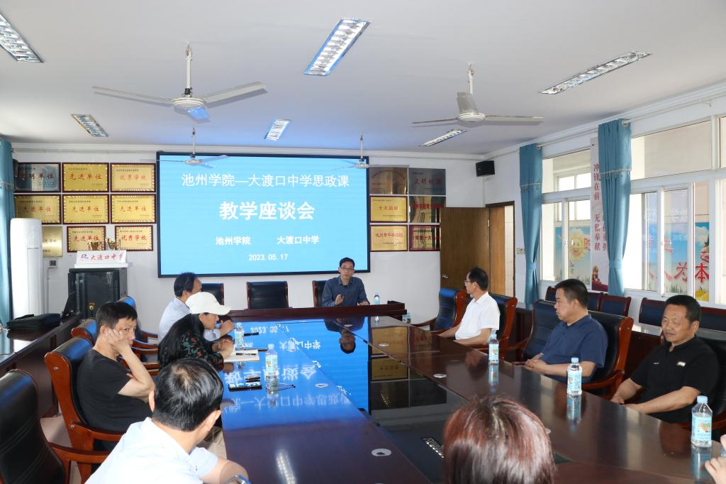 5月17日下午,永利总站ylzz55——大渡口中学思政课教学座谈会在东至县大渡口中学召开。永利官网马克思主义学院教师代表、大渡口中学校领导和思政课教师等十余人参加座谈会。