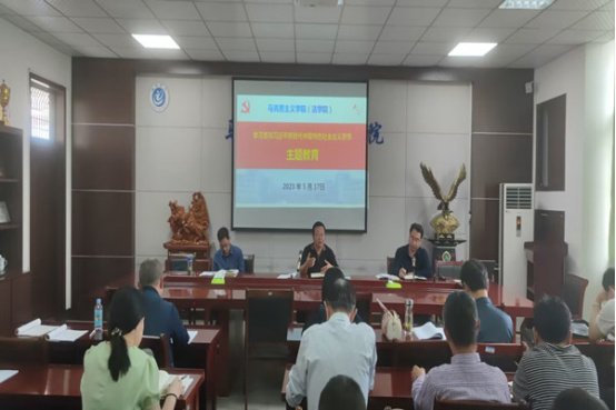 为推动主题教育入脑入心,把握“学思想、强党性、重实践、建新功”主题教育总要求,5月17日下午,马克思主义学院在博爱南二楼会议室举行了主题教育专题党课,学院全体教工党员和学生党员代表等参加学习。党课由学院党委书记刘为国主持。