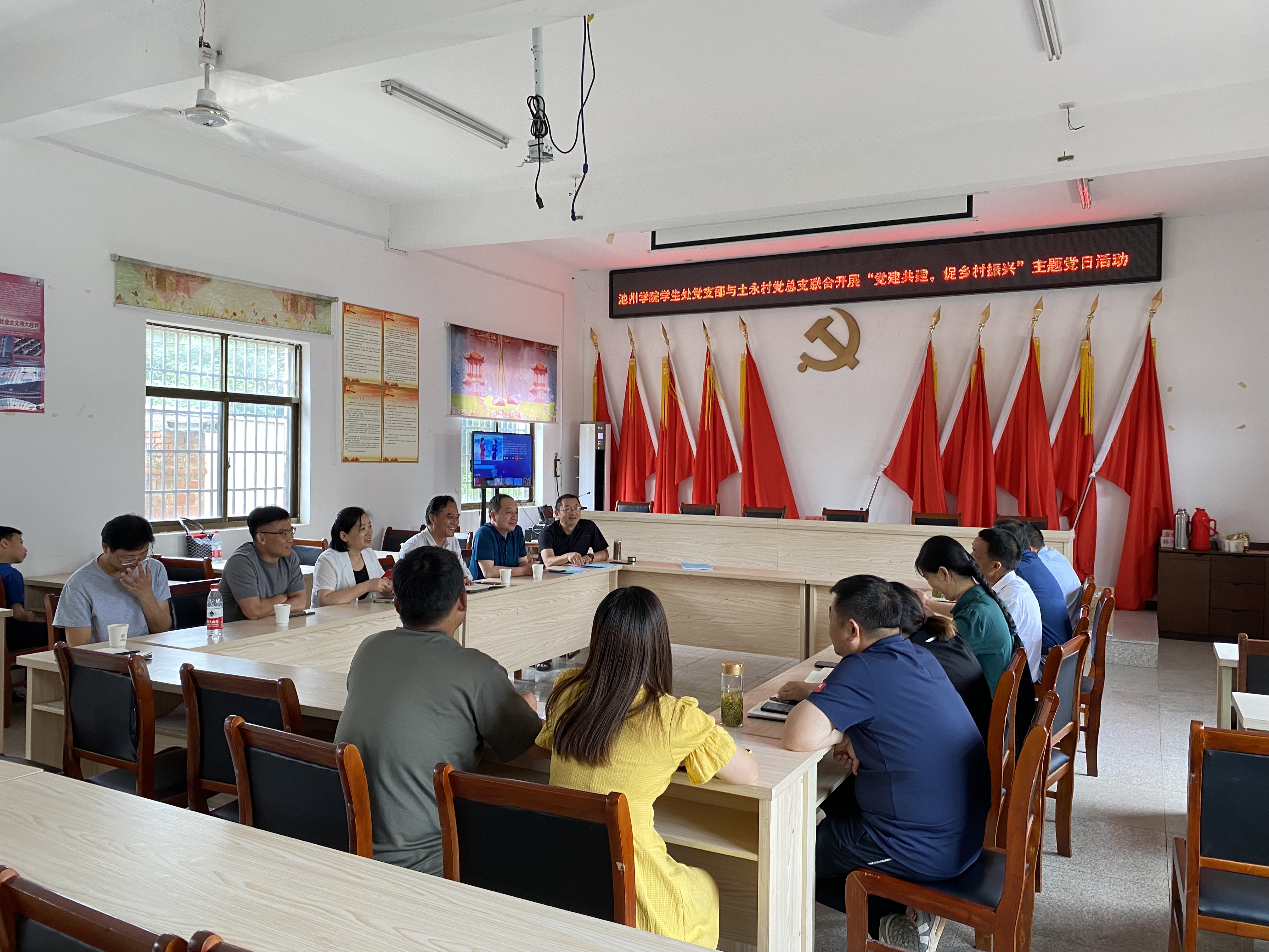 学生处党支部书记洪为宝回顾了学校驻村工作队在土永村曾经的四年多工作及党建引领与支部共建活动,介绍了学校在池州市域乡村振兴与定点帮扶工作情况,对土永村持续高质量发展所取得的成绩表示祝贺,与村两委班子就永利官网专家编制的土永村乡村振兴发展规划进行了深入研讨。