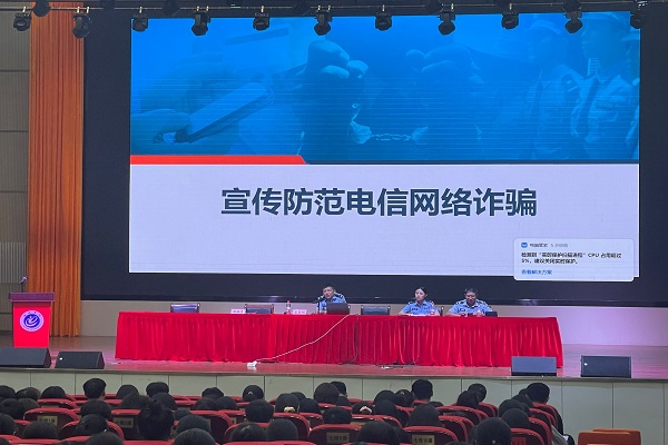 新生见面会后,旅游与历史文化学院邀请了池州市公安局防电诈中心及马衙街道派出所联合开展了防电诈专题培训。