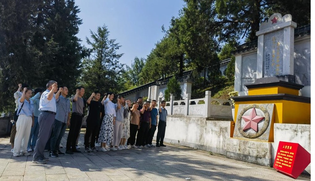在池州市贵池区棠溪镇革命历史纪念馆,文学与传媒学院全体党员教师、教职工通过观看革命历史纪录片、聆听党史讲解等,深切感受了棠溪人民在中国共产党的领导下,为新中国的建立,为实现共产主义理想,抛头颅、洒热血的斗争精神。在烈士塔前,全体党员缅怀革命先烈、重温入党誓词。