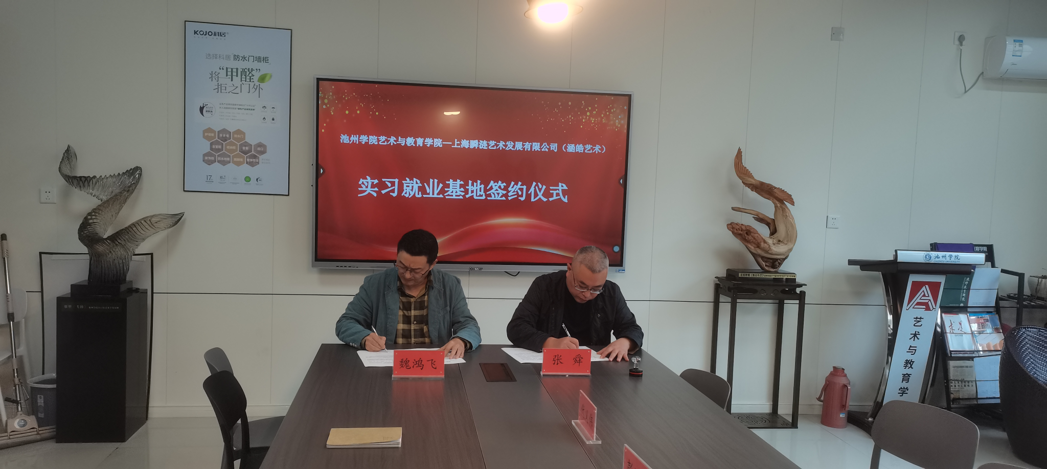 10月24日下午,艺术与教育学院在美术楼三楼会议室举行“实习就业基地”签约仪式。艺术与教育学院院长魏鸿飞、音乐学教研室主任路广宏、上海瞬涟艺术发展有限公司法人张舜及部分教师参加了签约仪式。会议由路广宏主持。