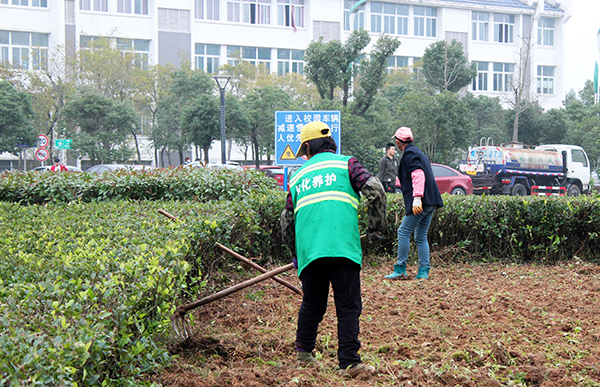 一锄一耙,低头弯腰,举手投足之间是付出的辛劳,更是看到校园在他们手上变得井然有序时的满足。