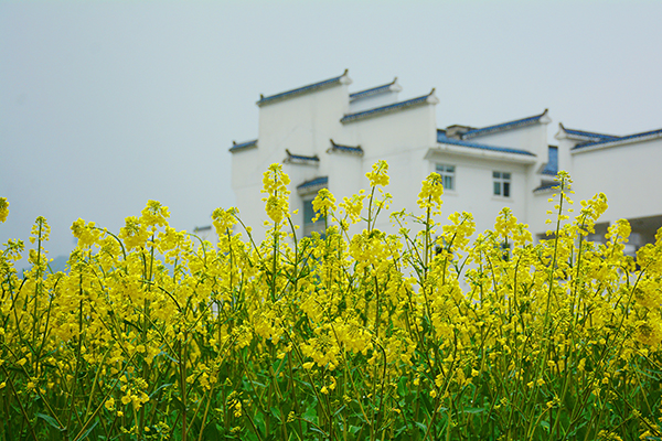 春风吹拂,菜花摇弋。一大片油菜花在微风的吹拂下连绵起伏,散发出淡淡的清香,花海如梦,令人痴迷;花香似酒,使人沉醉。颇有几分“流连戏蝶时时舞,自在娇莺恰恰啼”的韵味。远处的教学楼在花的映衬下,平添了几分诗情画意。